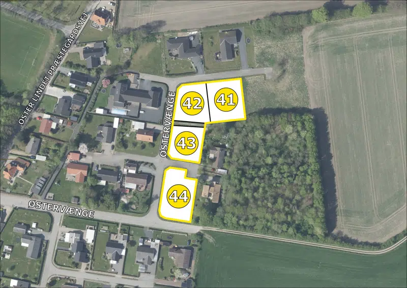 I denne udstykning i den østlige del af Øster Lindet finder du byggegrundene beliggende mellem grønne områder, træer og stor landlig idyl.